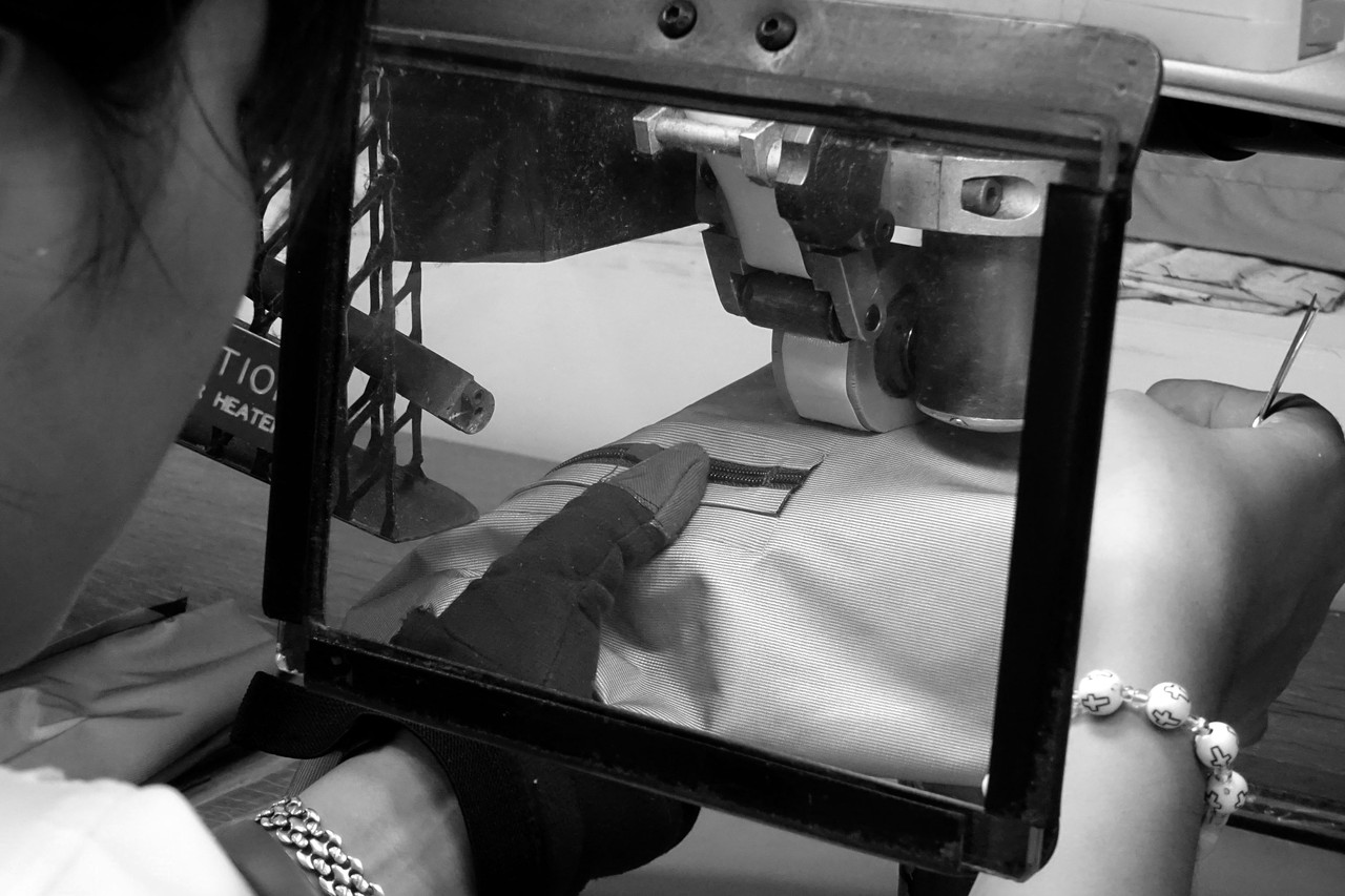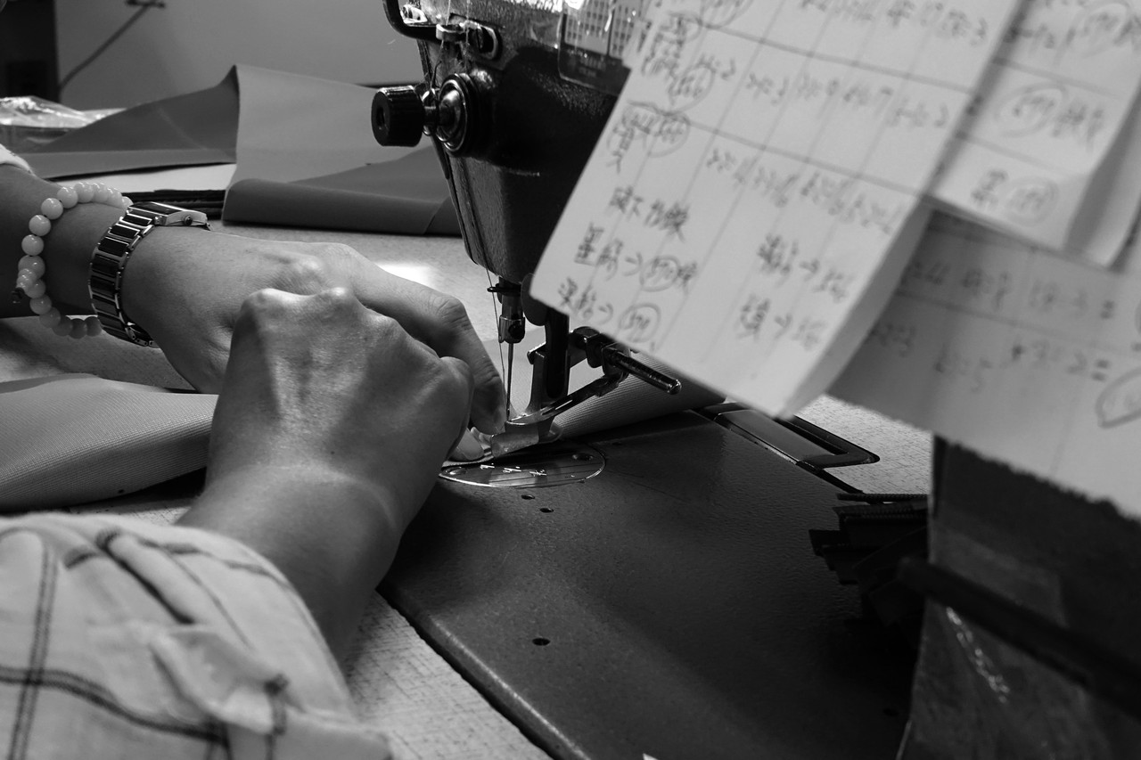 各アイテムごとの注意事項を確認しながら、パーツごとに縫製しています。