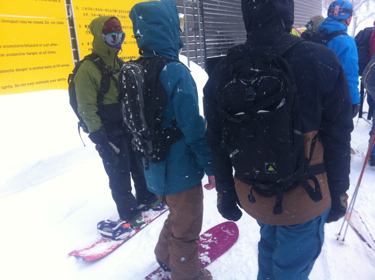 ゲレンデを滑っていても誰もがザックを背負い、ビーコン、スコップ、プルーブは常に携帯 している。