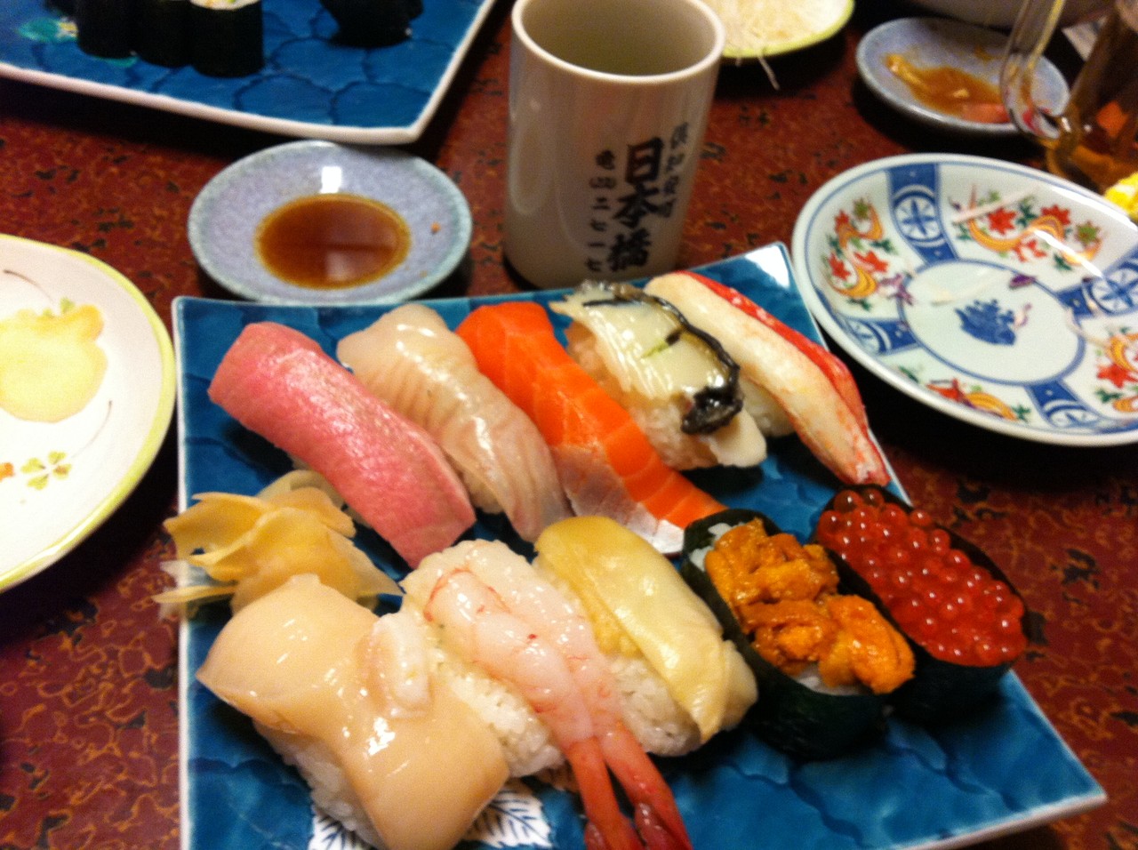しばしまったりしてから「ひらふ亭」の温泉 → 倶知安の「日本橋」で洋の家族も合流して寿司をメイク。