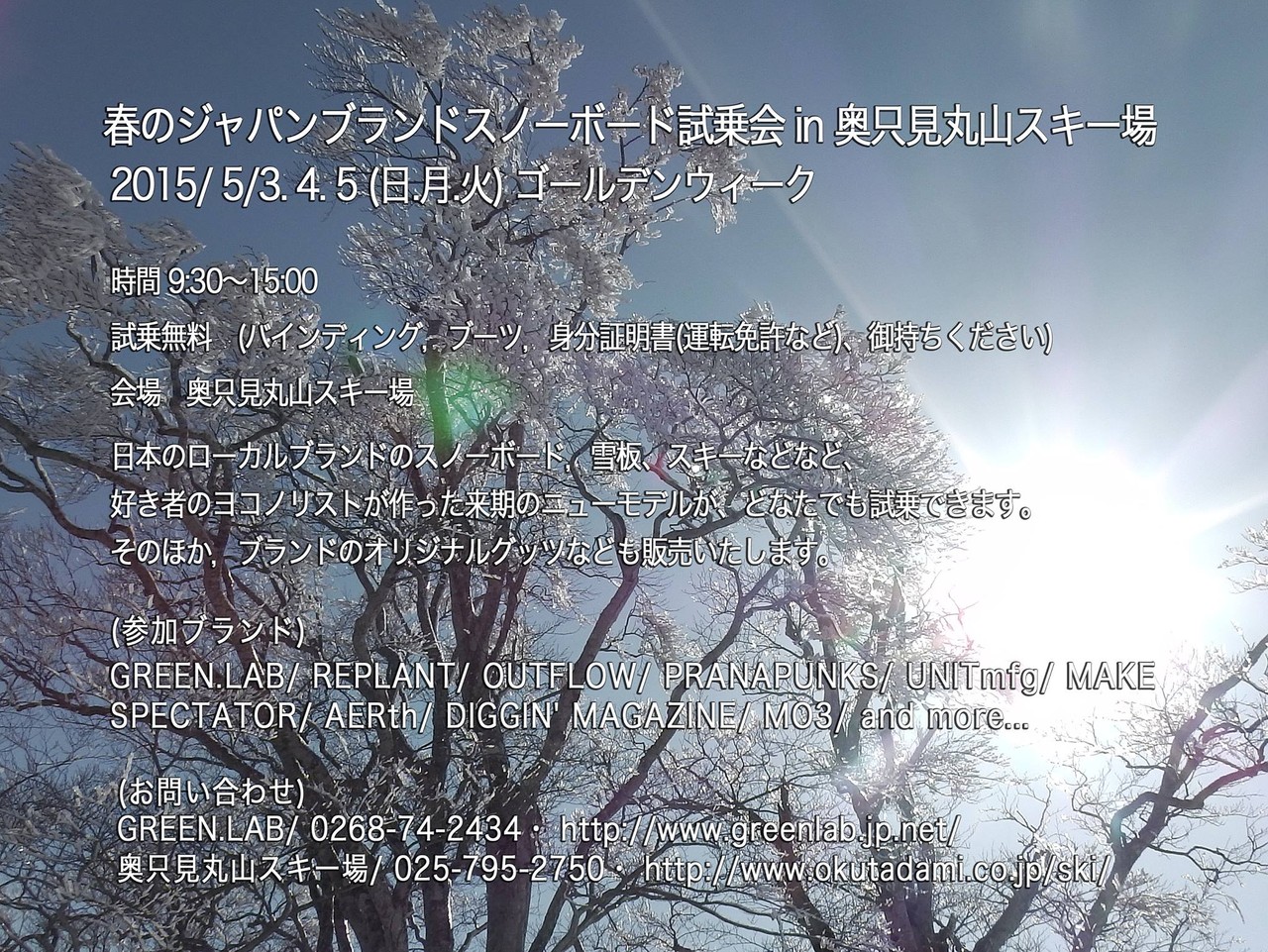 開催場所:丸沼高原スキー場(スノーボードの試乗会場でサンプルを展示)