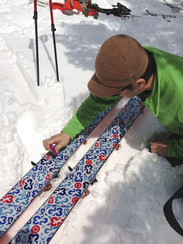 新品のシールは滑走性が良くないため、シールWAXを塗ると滑りが良くなるそうです。