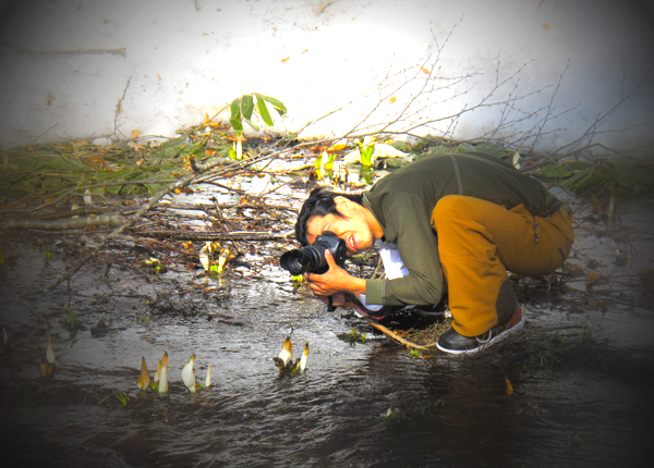 kuwaphotoはその咲き始めの水芭蕉を写真に収めるために方向やアングルを変えながら何枚もシャッターを切っていた。